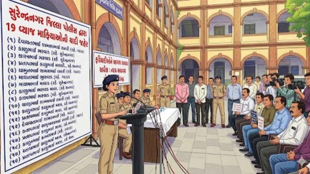 સુરેન્દ્રનગર જિલ્લામાં વ્યાજખોરોના વધતા જતાં ત્રાસ અને આત્મહત્યાના બનાવોને રોકવા માટે જિલ્લા પોલીસ એક્શન મોડમાં આવી છે. જિલ્લા પોલીસ વડાની સૂચનાથી ASP વૈદિકા બિહાની અને તેમની ટીમ દ્વારા જિલ્લાના 10 તાલુકાના 19 જેટલા કુખ્યાત વ્યાજ માફિયાઓની યાદી સત્તાવાર રીતે જાહેર કરવામાં આવી છે.